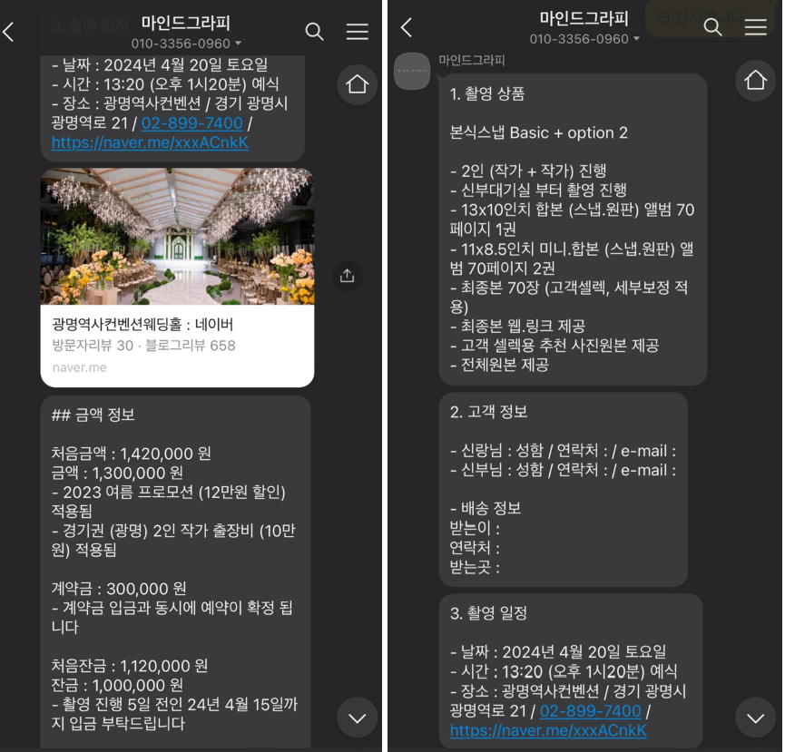 그리고 2부 예식(뷔페) 스냅까지 진행하며 광명역사컨벤션웨딩홀 촬영이 130만원 내로 가능한 2인 작가 업체 중에 퀄리티가 가장 좋은 곳이 바로 마인드 그라피였어요.